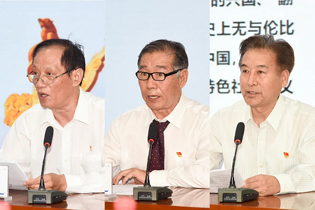 隨后,三家與黨同齡、與共和國(guó)同歲企業(yè)的老黨員代表展開了“恒天紅色記憶”環(huán)節(jié)。來自鄭紡機(jī)的胡德先、經(jīng)緯智能的高志堅(jiān)、青島宏大的韓慶華三位老黨員同志分別講述了各自企業(yè)賡續(xù)紅色基因、勇?lián)鷪?bào)國(guó)重任的一個(gè)個(gè)感人故事、一段段激情歷史。老黨員代表的發(fā)言,字字句句飽含著對(duì)黨的忠誠和感恩,一言一語飽含著對(duì)恒天紡機(jī)事業(yè)的深情熱愛,讓與會(huì)人員深受感染,倍受鼓舞,感受到恒天企業(yè)流淌著紅色基因的悠久歷史。正是因?yàn)橛羞@樣一批批、一代代老黨員老同志,在戰(zhàn)爭(zhēng)年代,他們以生命寫下對(duì)黨的承諾;在和平時(shí)期,他們以奮斗譜寫出對(duì)黨的忠誠;他們默默付出,矢志不渝,在自己平凡而又偉大的崗位上始終滿懷熱情,為企業(yè)的發(fā)展傾注了畢生心血,用忠誠書寫理想,用行動(dòng)砥礪擔(dān)當(dāng),我們的企業(yè)才能有今天的欣欣向榮、蓬勃發(fā)展。